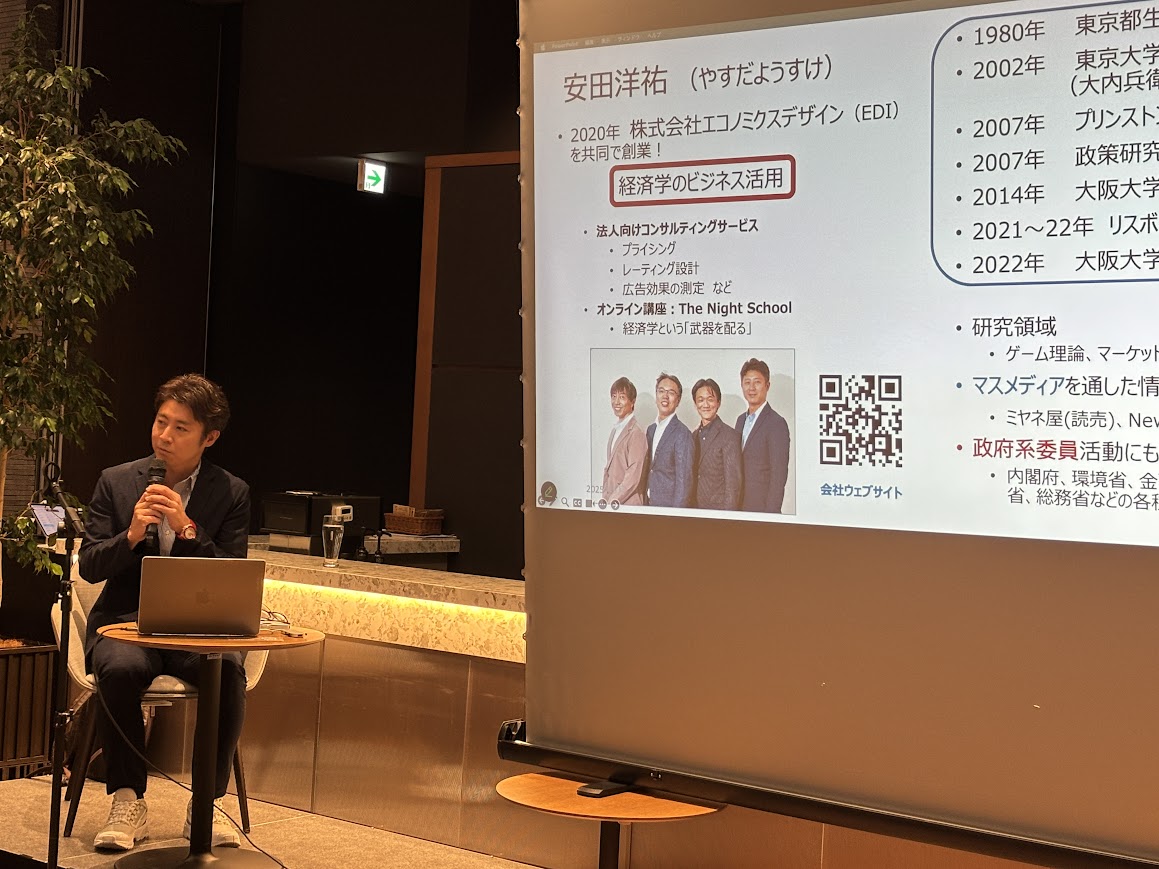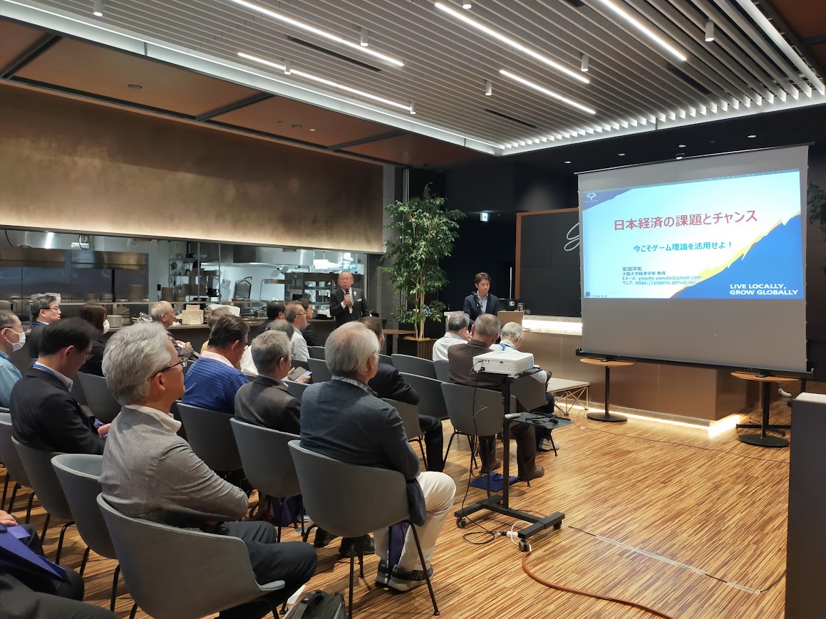 今回の講師には、大阪大学経済学研究科・経済学部教授の安田洋祐先生をお招きし、「日本経済の問題とチャンス ―今こそゲーム理論を活用せよ―」というテーマでご講演いただきました。安田先生は、若手ながら日本のゲーム理論研究を牽引する存在として、経済学・経営学の分野で精力的に発信を続けておられます。